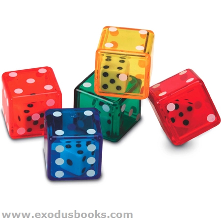 Twice the Dice—Twice as Nice! Use these double dice to teach probability, predict numerical outcomes and track the statistical results of repeated rolls. Each brightly colored, translucent outer die holds a single, smaller, white die inside. Twice the dice means twice the math—and twice the learning! Set of 72 dice comes in a sturdy hexagonal tub for quick clean-up and easy storage.