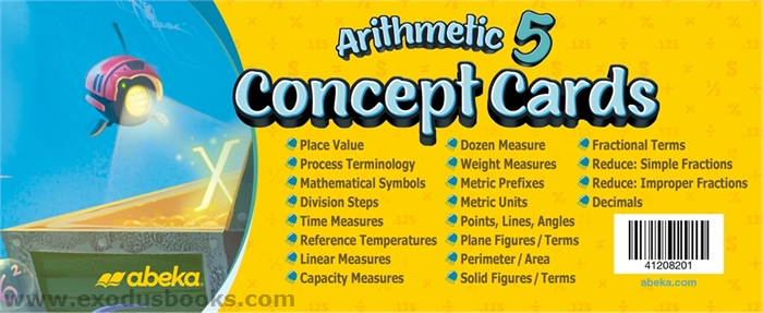 The value of these 199 concept flashcards cannot be overestimated! Use them over and over to ensure that your child understands arithmetic concepts and to build his computing speed. Correlated with grades 5–8 arithmetic textbooks, the cards can be used as teaching visuals and for systematic review as specified in the Arithmetic Curriculum/Lesson Plans for those grades. They are numbered, labeled, and color coded for ease of use. Initial cards provide a table of contents for the cards so that you can easily locate just the card you need. Answers are on the back.