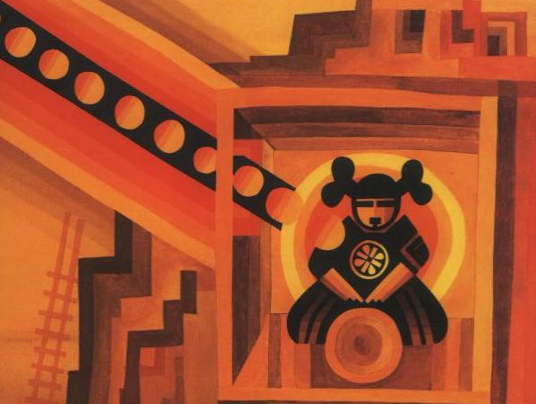 McDermott's fabulous geometric illustrations make this book. They were described by his friend Joseph Campbell as "color magic" and they really are. Bold, inspiring, action-packed, and vibrantly colorful, they're also full of emotion as the stylized but human characters go through the wide range.