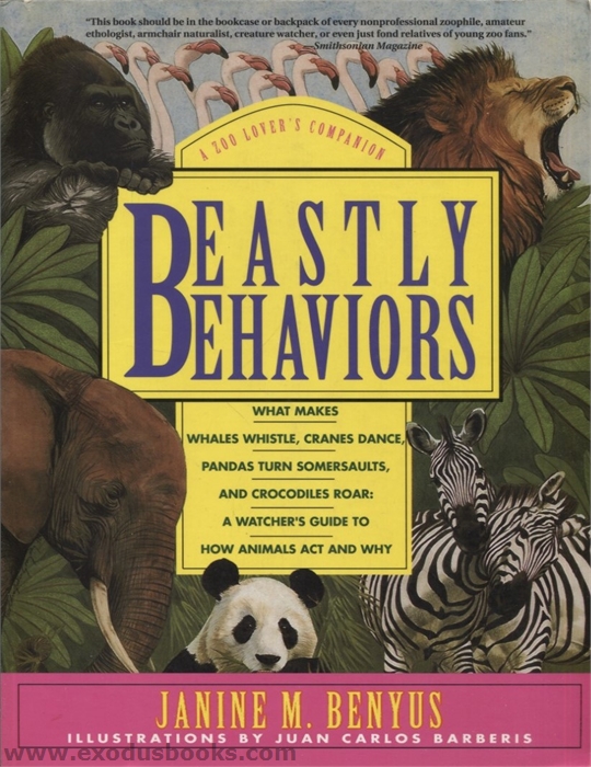 Beastly Behaviors is a book for animal lovers everywhere and of all ages–a lively, illustrated armchair field guide to the behavior and body language of the world's most watchable zoo animals, arranged just the way exhibits are set up at the zoo: Animals of the African jungles, plains, and waterways; Asian forests; the warm oceans; North America; the Poles. In the friendly tone of a knowledgeable zookeeper, Janine Benyus draws from the extensive research of animal behaviorists and tells why and how these creatures scratch, run, preen, bathe, stretch and yawn, eat and play, confront each other and court their mates, give birth to young and keep them fed. Use it in any zoo or wild animal park, on safari, on camping trips, on hikes, or even at home while watching wildlife shows on TV. But most of all, use it for browsing before, during, after–or instead of–a visit to the zoo.