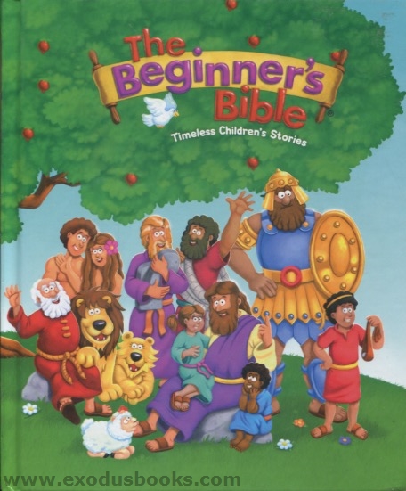 Though not one of our favorites, The Beginner’s Bible is one of the more popular children’s Bibles we carry. This Bible features 96 stories, evenly split between the Old and New Testaments. Each story spreads over several pages and includes very cartoony pictures. Stories of a more difficult nature, including the story of Cain and Able, are skipped entirely. The language is very simple and is probably best read aloud to 2-4 year olds, or for early readers to explore on their own.