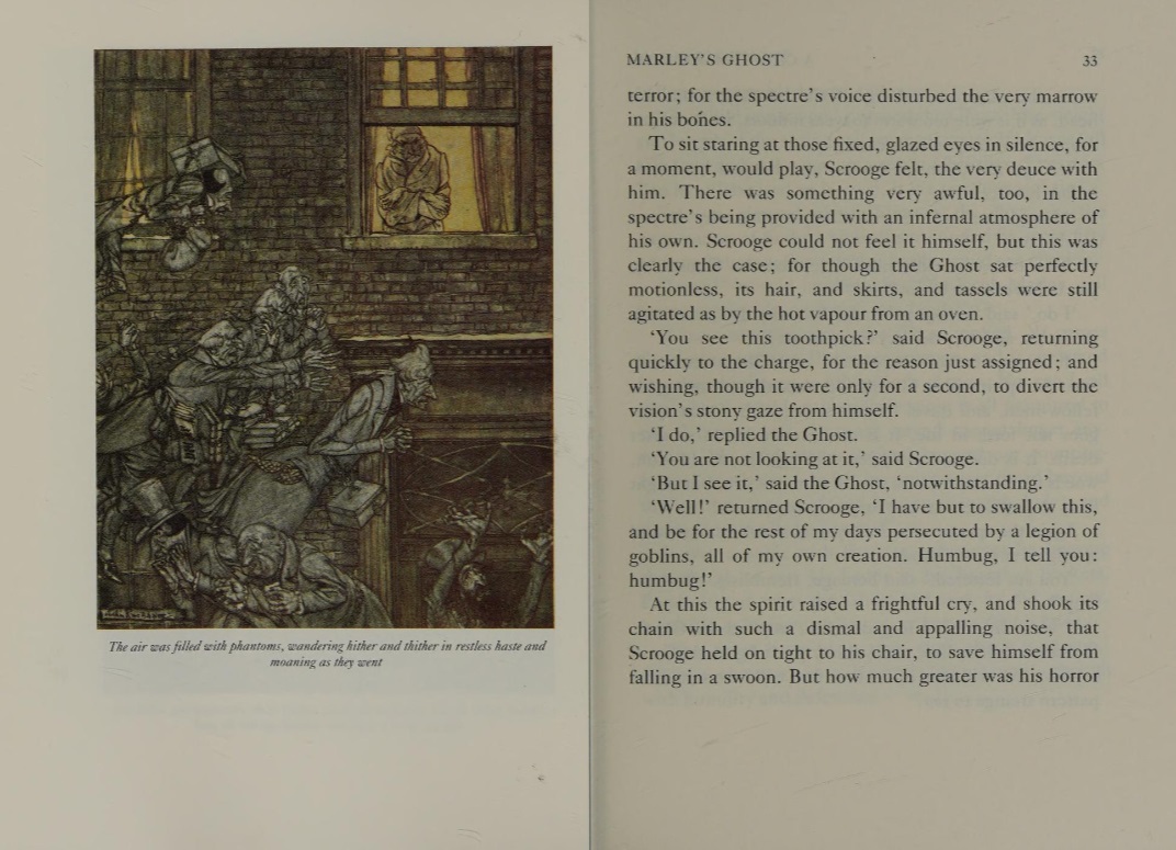 Which would be a considerable feat in itself since this is a fast-paced, thoroughly engrossing tale with enough humor, excitement and tender moments to keep anyone intrigued long enough to finish the story. The plot is well-known: Scrooge is a bitter old man, selfish and alone, who sees no value in the celebration of Christmas, largely because it centers around a profound sense of joy for which he has no utilitarian purpose. To help him see the error of his own ways, Scrooge is visited first by his old colleague Bob Marley—now a ghost—who informs him three spirits will be arriving to take him on a tour of his own life. The spirits are punctual, and before the end of the night old Ebenezer has revisited key Christmases in the past as well as a very dark one yet-to-come, exposing a life of pain inflicted and pain endured. His consequent jubilant surrender to good-will and "Christmas cheer" is one of the high points in literature.