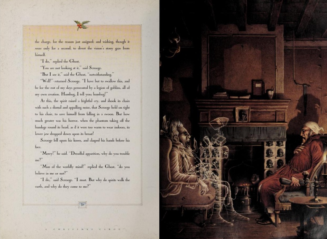 Which would be a considerable feat in itself since this is a fast-paced, thoroughly engrossing tale with enough humor, excitement and tender moments to keep anyone intrigued long enough to finish the story. The plot is well-known: Scrooge is a bitter old man, selfish and alone, who sees no value in the celebration of Christmas, largely because it centers around a profound sense of joy for which he has no utilitarian purpose. To help him see the error of his own ways, Scrooge is visited first by his old colleague Bob Marley—now a ghost—who informs him three spirits will be arriving to take him on a tour of his own life. The spirits are punctual, and before the end of the night old Ebenezer has revisited key Christmases in the past as well as a very dark one yet-to-come, exposing a life of pain inflicted and pain endured. His consequent jubilant surrender to good-will and "Christmas cheer" is one of the high points in literature.