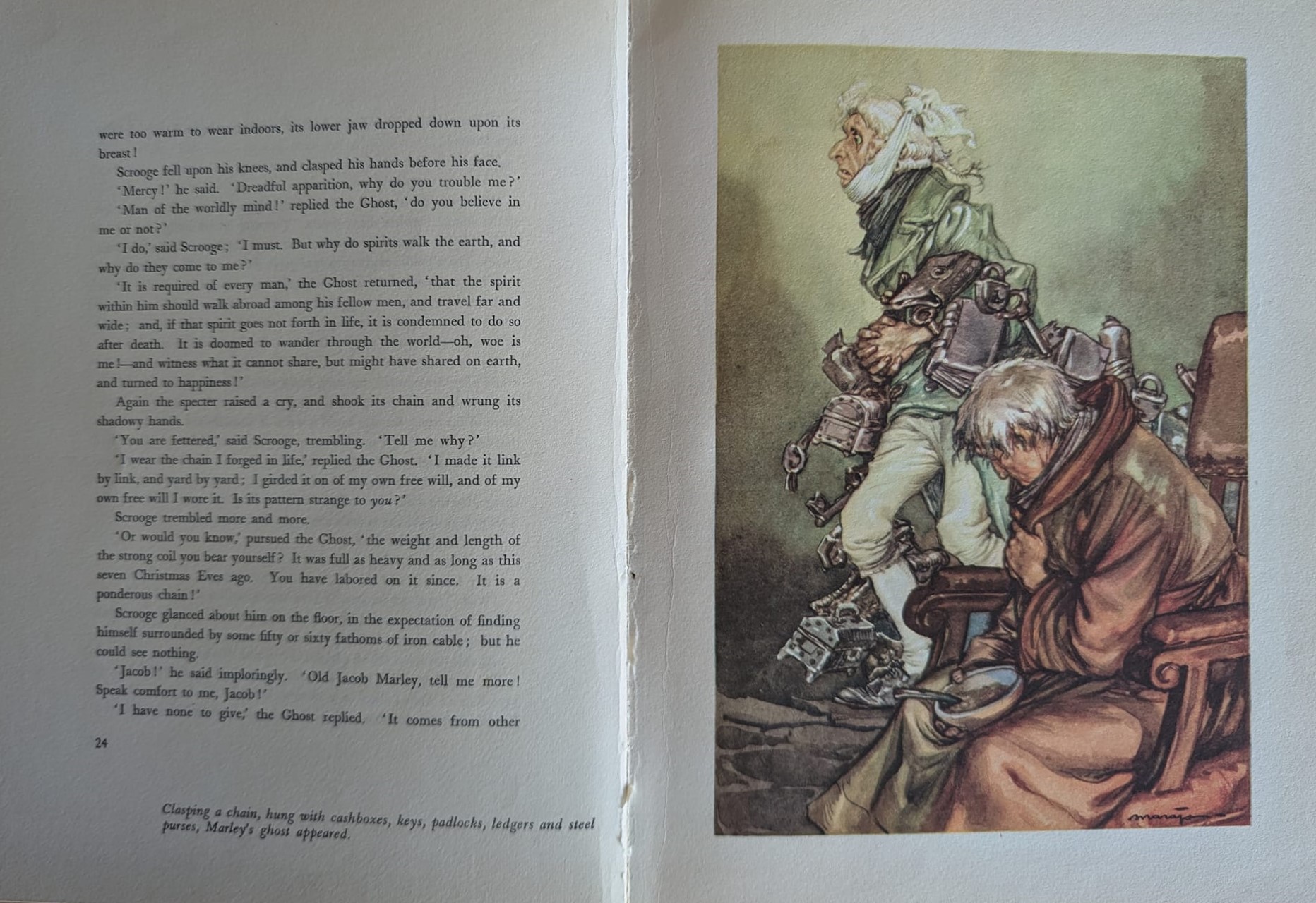 Which would be a considerable feat in itself since this is a fast-paced, thoroughly engrossing tale with enough humor, excitement and tender moments to keep anyone intrigued long enough to finish the story. The plot is well-known: Scrooge is a bitter old man, selfish and alone, who sees no value in the celebration of Christmas, largely because it centers around a profound sense of joy for which he has no utilitarian purpose. To help him see the error of his own ways, Scrooge is visited first by his old colleague Bob Marley—now a ghost—who informs him three spirits will be arriving to take him on a tour of his own life. The spirits are punctual, and before the end of the night old Ebenezer has revisited key Christmases in the past as well as a very dark one yet-to-come, exposing a life of pain inflicted and pain endured. His consequent jubilant surrender to good-will and "Christmas cheer" is one of the high points in literature.