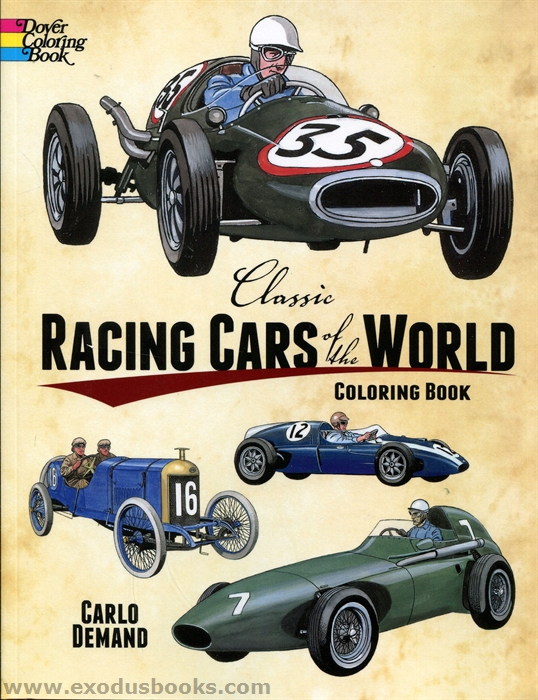 Men began to race cars as soon as they could drive them. The first great automobile race (Paris-Bordeaux, 1895) was won by a 1-cylinder, 4 horsepower Panhard & Levassor, averaging 15 mph. Since then, the urge to drive and win has brought about faster, safer, and sleeker cars both on the track and off. The embodiment of these ideals, the classic racing cars, are not only works of beauty, but with their paints, numerals, decals and chrome, works of brilliant color too. Here are 45 fabulous racers, from 1895 to 1978, accurately rendered and ready to blaze their colors. Carlo Demand's vivid drawing feature automotive marvels from the world's record books: the 1902 Renault, 1908 Locomobile, 1911 Marmon Wasp (first Indianapolis 500 winner), 1913 Peugeot, 1926 Bugatti, 1934 Alfa Romeo, 1937 Mercedes, 1952 Agajanian Special, 1953 Maserati, 1957 Vanwall, 1958 Ferrari, James Hunt's 1976 McLaren-Ford M 23, Mario Andretti's 1978 Lotus 79, and many others. Each is manned by a driver in period gear. Accompanying captions give full racing history and other remarks, plus a color code for the entire machine.
