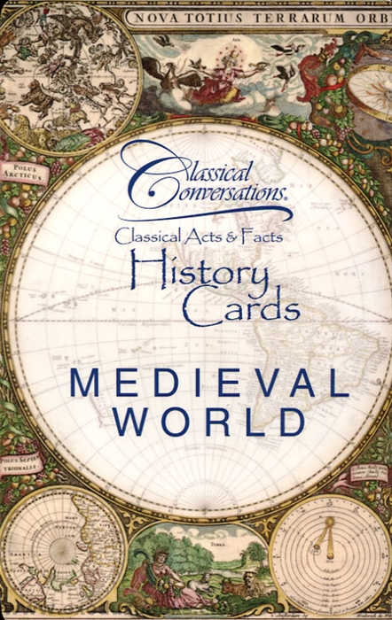 The Classical Conversations Medieval World - History Cards take up immediately where the Classical Conversations Ancient World - History Cards leave off. The first card is about Jesus of Nazareth; the actual Middle Ages period doesn't begin until the 12th card in the series (card #54), making the designation "Medieval World" not entirely accurate. Topics include Islam, the Vikings, King Alfred, important Christian saints of the Medieval period, several wars, important architecture, and the Black Death. Artwork includes photos, stained-glass images, and lots of paintings.