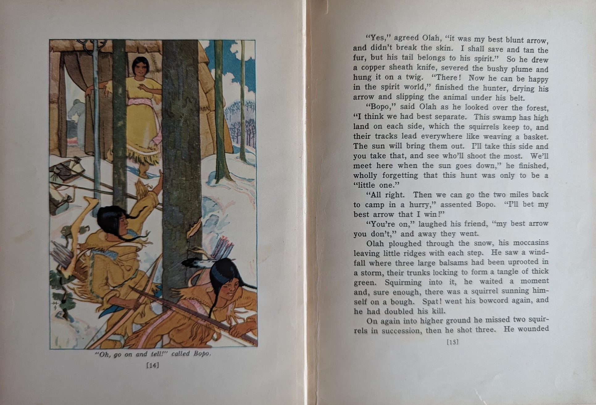 Claws of the Thunderbird was written and illustrated by Holling C. Holling, who spent time living with native American Indian tribes. His stories are recommended for their authentic representation of Indian culture, as well as their beautiful illustrations. This book was written for ages 12 and up, but adults have also enjoyed Holling's Indians stories for nearly 100 years.