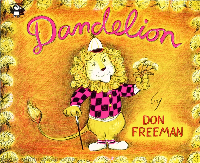 Despite instructions to come as is, Dandelion goes all out for the party he is invited to. He has his mane curled by the barber, gets a stylish checkered suit, and buys a bouquet of fancy flowers for his hostess, the Giraffe. This dandy lion is all set for the party. The only problem is, when he knocks at the door, he is so dressed up that Giraffe doesn’t recognize him! Dandelion gets the door slammed in his face, just in time for a downpour that quite ruins his curls and his suit. But without the jacket and the curls, he looks just like he normally does, and tries the door again- this time with a handful of dandelions instead of a flower shop bouquet. He and his friends laugh about his misadventure, but Dandelion promises never to try to be too dandy, and to just be himself.