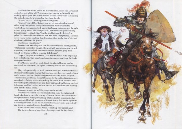 The horizon stretched out an invitation. He knew that he too must be a knight, must travel on a quest, must seek adventures. So he found a suit of rusty armour, made himself a visor of cardboard and tin, and he called himself Don Quixote de la Mancha.