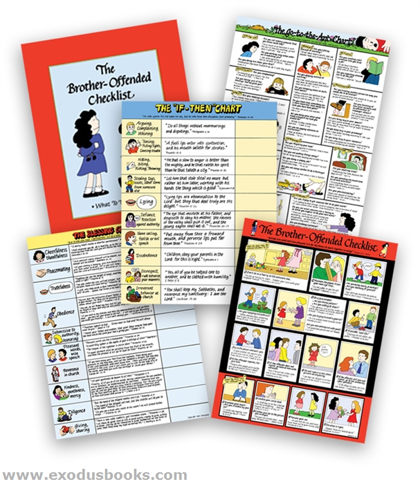 Set of four laminated, color, 8.5"x11" charts and one book includes the If-Then Chart, the Blessing Chart , the Brother-Offended Checklist, (with 28-page booklet) and the Go-to-the-Ant Chart . These smaller charts are especially handy if you're tight on wall space, or if you want to keep the charts in a binder, on your fridge, etc.