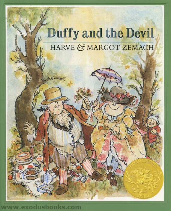 Unlike the traditonal Rumplestiltskin story, this version has Duffy turn to the old housekeeper for help, and the Duke himself is inadvertently (and hilariously) involved in discovering the devil's name. The jumbled, crowded illustrations sprawl across the pages as Duffy makes her way from rags to riches.