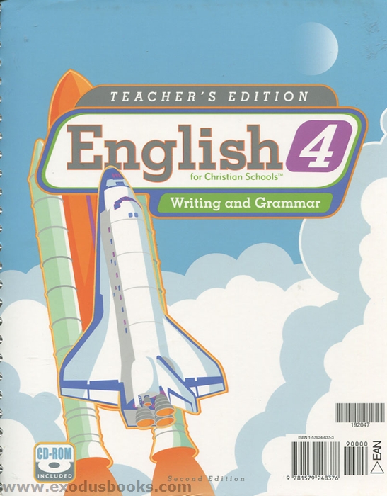 The Teacher Edition provides easy instructions to teach grammar for understanding and to guide the teaching of writing using the Writing Process. Students plan, draft, revise, proofread, and publish eight different types of writing: personal narrative, friendly letter with instructions, compare-contrast essay, book review, tall tale, research report, business letter, haiku, and acrostic poetry. Rubrics are provided to help the teacher evaluate each type of writing. The Teacher's Edition contains reduced student pages and Extra Practice pages (with answers) as well as Keeping Up transparency masters (with answers) to quickly review grammar during the writing chapters. A thorough presentation of English instruction with a balance of grammar study and writing practice.
