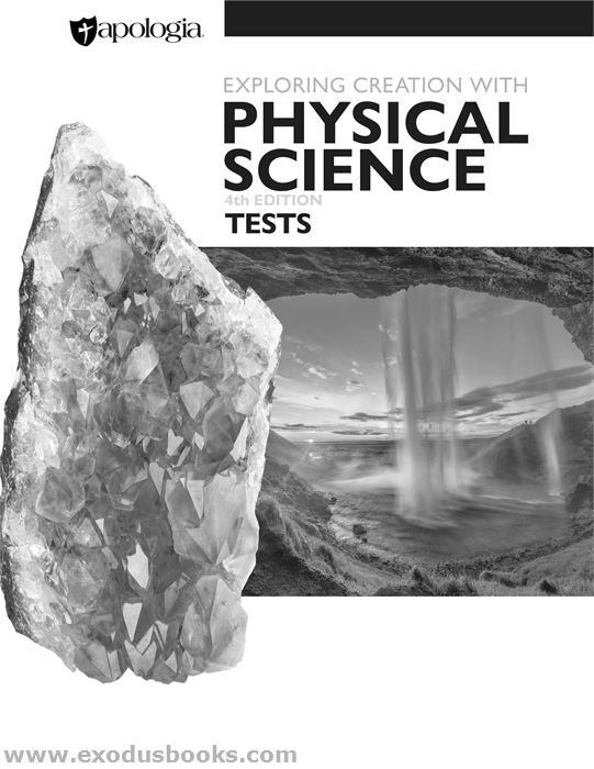 This packet of tests contains a perforated copy of each module test from Exploring Creation with Physical Science, 4th Edition. It contains ONLY tests and no answers. This product is great for a family with multiple students taking the same course or families who have used the course in the past and need a new set of tests for their current student. One set of test pages comes packaged with the Course Guide & Answer Key (sold separately).