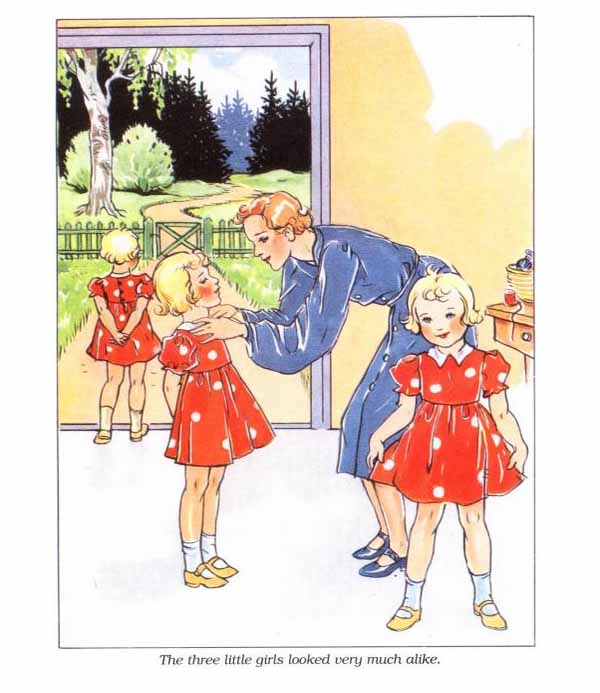 Flicka, Ricka, and Dicka were three little girls who lived in Sweden. They had blue eyes and yellow curls, and they looked very much alike.