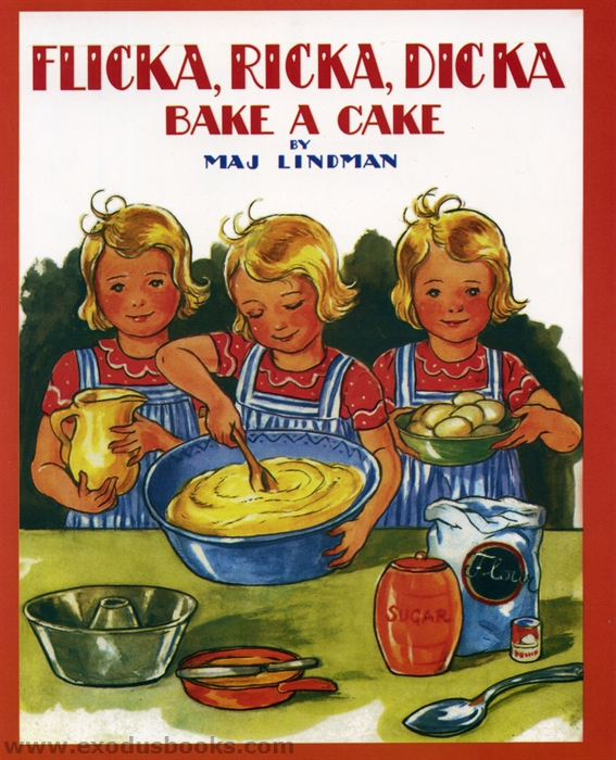 Originally published in the United States in 1955, Flicka, Ricka, Dicka Bake a Cake was one of a series of treasured books created by Swedish author-artist Maj Lindman (1886-1972). She also wrote and illustrated stories about three little Swedish boys, Snipp, Snapp, and Snurr.