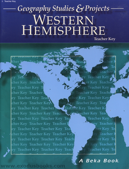 This key contains a copy of the book World Atlas and Geography Studies: Western Hemisphere with answers overlaid in red.