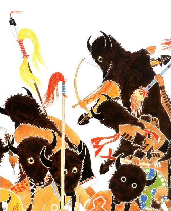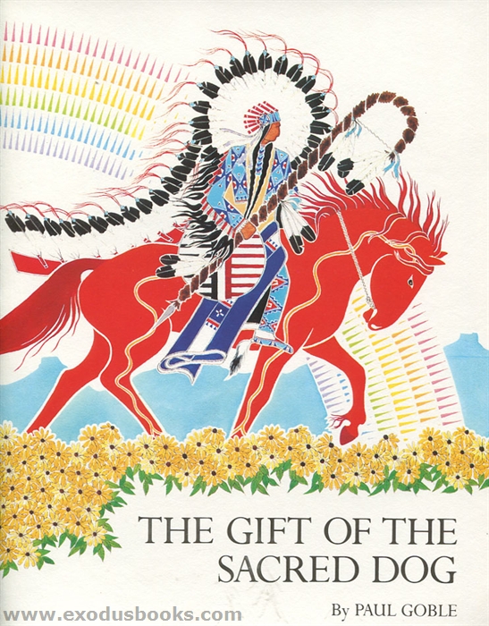 A brave boy goes into the hills and prays for help for his people. A rider on a magnificent animal comes to him and says: "This animal is called the Sacred Dog. He can do many things your dogs can do and also more...He is as the wind: gentle but sometimes frightening." The clouds close and suddenly one by one countless Sacred Dogs course down from the sky. And so the courage of one determined boy is rewarded by the Great Spirit: The horse, or Sacred Dog, is given to his tribe.