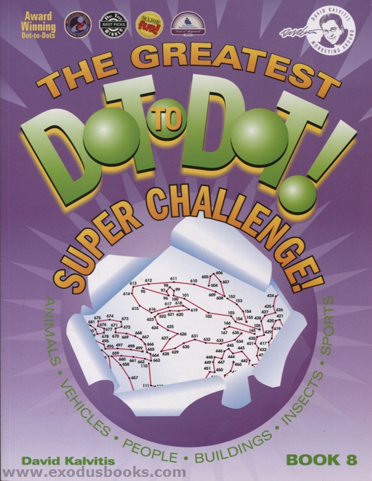 These are definitely not your father's dot-to-dots. With no clues given to the final image, numbers into the thousands, and amazing detailed pictures, The Greatest Dot-to-Dot Super Challenge provides a whole new level of challenge and intrigue. Each puzzle is a work of art in its own right. When you complete a puzzle, you are rewarded with images that are themselves vivid and rich in detail and always surprising. Author and artist David Kalvitis continues his Dot-to-Dot revolution by continuing to create complex puzzles like the patent pending Arrow and Compass puzzles that provide unique methods for connecting points to reveal a picture. Other puzzle designs include Alpha Dots and ABC Sets as well as double page spreads with over 1,300 dots. Kalvitis always has older kids and adults in mind when designing his puzzles. With his ever-present attention to detail, increasingly complex images and fine-tuning of his craft with each new book, The Greatest Dot-to-Dot Super Challenge continues to raise the bar for dot-to-dots. Ages 8 to Adult.