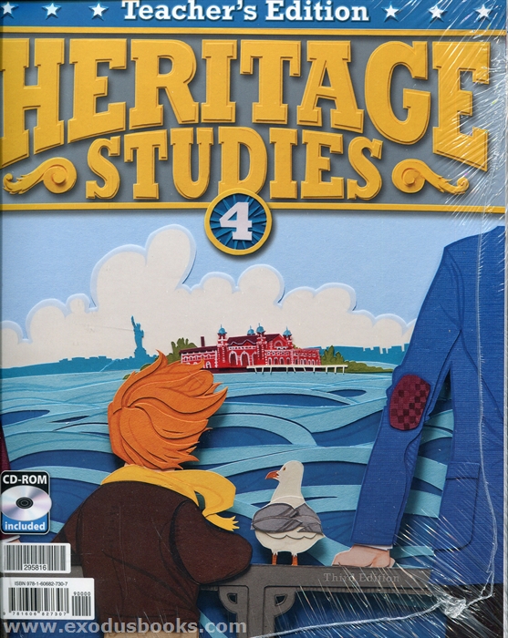 Heritage Studies 4 Teacher’s Edition 3rd edition includes 180 lessons that provide objectives, explain vocabulary, and encourage discussions. Also included are some cross-curricular links, primary sources, background information, and extra activities. The accompanying Teacher Toolkit CD, located on the inside back cover, includes worksheets, colorful visuals, maps, and rubrics to grade activities and projects. The Student Activity Manual Answer Key is also included on the CD.