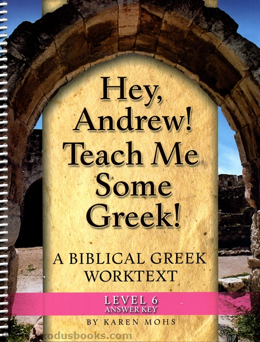 Hey, Andrew! Teach Me Some Greek! teaches biblical Greek to preschoolers and older students (even adults enjoy it) using a combination of deductive, inductive, and interactive methodology presented in a workbook format. This easy-to-use workbook series requires no prior knowledge of Greek. Upon completing this series, your student will have an understanding of koine (biblical) Greek. This understanding will be demonstrated in reading comprehension and writing skills. In addition, your student will have the tools to pursue his or her own study in the Greek New Testament and can combat incorrect theology based on faulty exegesis. An expanding Greek vocabulary extends your student's English vocabulary through an understanding of roots. Finally, the grammatical structure your student will learn will better prepare him or her to study other foreign languages. (In the Level 6 workbook, enclitics, personal pronouns, present indicative of the "being" verb, present middle and passive indicative, imperfect and future active indicative, deponent verbs, imperfect middle and passive indicative, future middle indicative, and deponent futures are taught, again incorporating these concepts in the formation and translation of Greek sentences.) This Level 6 Full Text Answer Key is for use with Hey, Andrew! Teach Me Some Greek! Level 6 Workbook.
