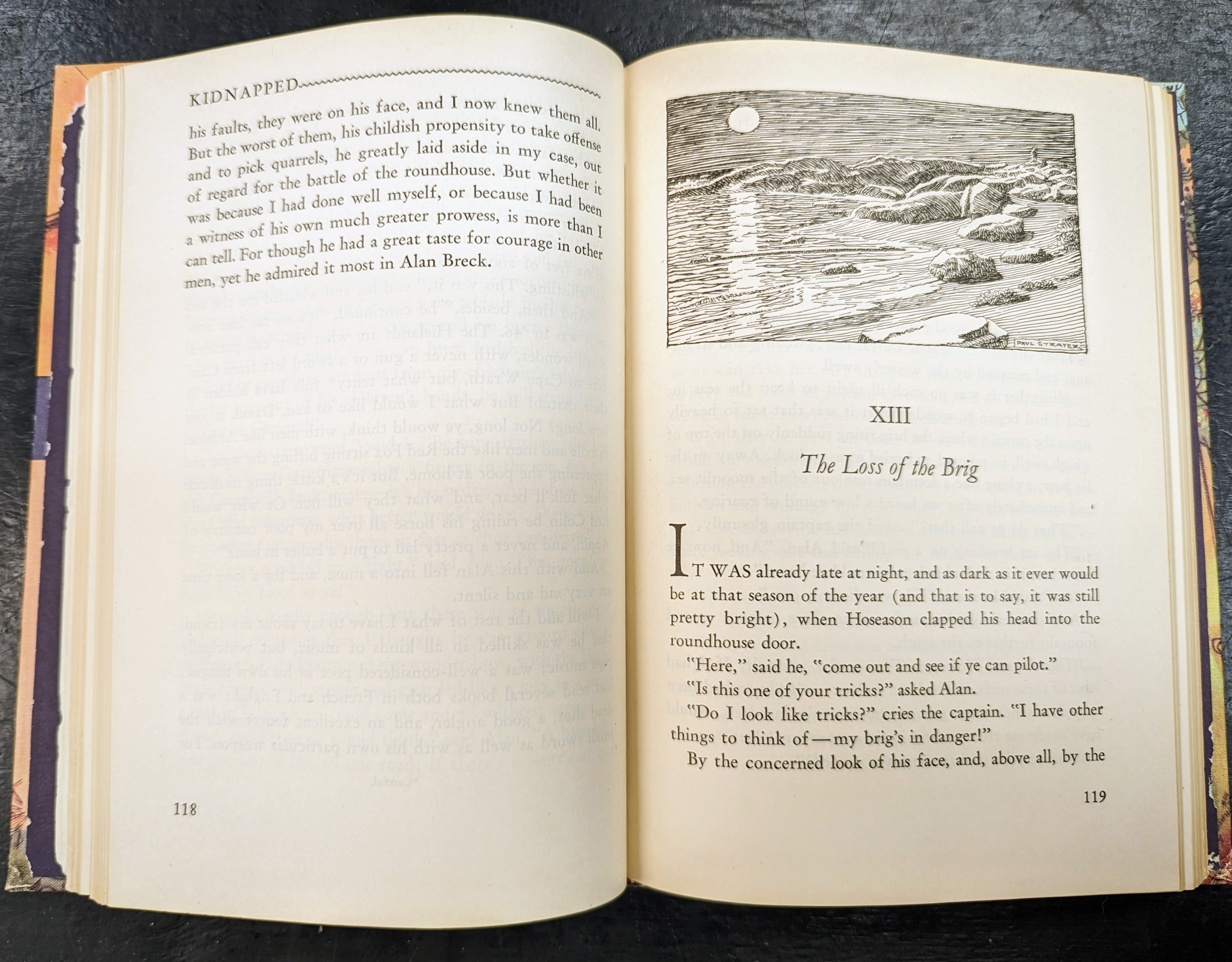 If you stand back from Kidnapped, you'll probably come to the conclusion that it's highly improbable and far-fetched. But that's just your trouble—you don't stand back from a Robert Louis Stevenson story. He won't let you. As soon as you start the first page, he drags you in and keeps your head just below the surface till the end. By then, it all seems perfectly plausible.