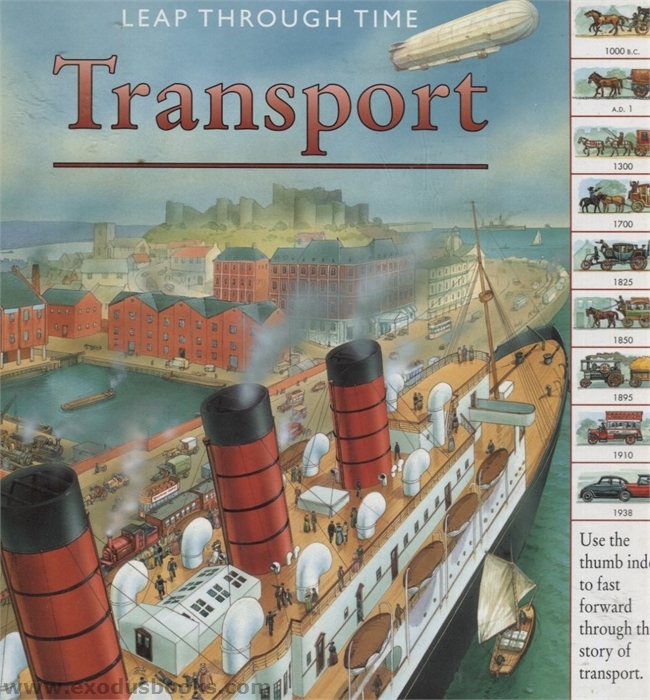 Find out about the story of transport on land, at sea, and in the air. Using the thumb index, you can whiz through time–years or sometimes even centuries–from one page to the next. It's an exiting trip! You can witness a Roman road being built, watch sailing ships arrive at a dockside, and see the first steam locomotives and motor cars in action. Then fast forward to the buys airports, highways, and container ports of today.