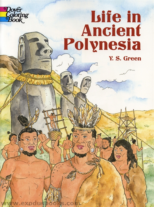 This coloring book chronicles history of Polynesian people in 44 carefully researched and meticulously rendered illustrations. Includes images of Polynesian sailing vessels, a fortified village, a Maori meeting house, symbols of royalty, hunters and ceremonial dancers; islanders weaving baskets, practicing the art of tattooing, mourning the dead, constructing massive stone statues, in battle with enemy warriors, and more. For those who are concerned, the artist delicately renders women and manages to avoid showing nudity.