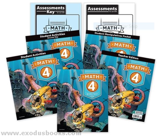 Math 4 provides an interactive approach to build your student’s understanding of multiplication, division, decimals, fractions, geometry, and pre-algebra. An ocean theme with Captain Bailey and his pet seagull Clipper enhances real-life math applications, problem-solving, and estimation. Additionally, the course focuses on biblical worldview shaping throughout by identifying five recurring themes: (1) math shows that our world is designed; (2) math helps people do work; (3) math helps us meet others’ needs; (4) math helps us make wise choices; (5) math has limits. This course builds on concepts from Math 3 and leads into Math 5.