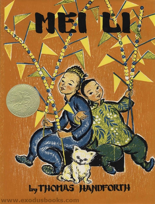 This is the 1939 Caldecott medal winner, and as was typical of picture books at that time the story is relatively long. Thomas Handforth spent many years in China and knew a little girl named Mei Li who was the inspiration for the title character. And Mei Li is a very likable character, very much like a real little girl. She is very ambitious, brave, and eager, despite her brother's disdain. Unfortunately the story is also mixed with fortune tellers and the real appearance of a "kitchen god." Though one interesting illustration features a skinny priest who tells children to throw a penny at the bell above his head for good luck, while he lays below and rakes in the pennies. Mei Li is a pleasant story with very detailed illustrations of China in Handforth's time. Sadly it is out of print and hard to find.