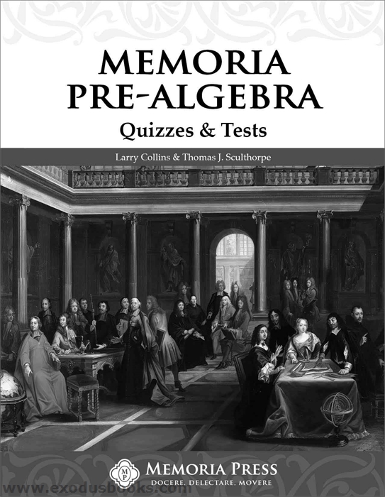 Memoria Pre-Algebra functions as a student’s first year of algebra instruction. It finishes arithmetic with mastery of advanced computational skills and introduces algebraic terminology, concepts, and problem-solving methodology. This course achieves the latter through mastery of first-degree relations with one variable. The Memoria Pre-Algebra Quizzes & Tests evaluate student progress. Throughout this course, there are ten quizzes, one at the conclusion of each part, and three tests, one at the conclusion of each unit. Quizzes focus on the material in their respective parts, but exams are cumulative. There is also a Final Exam covering Units I-III that should be attempted after intensive review.