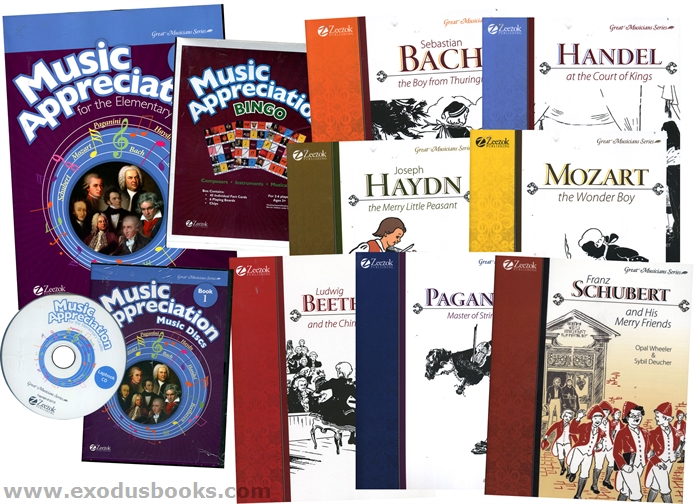 The bundle includes the Student Activity Book, Coloring Book, Music & Lapbook flashdrives, & seven Opal Wheeler biographies.
