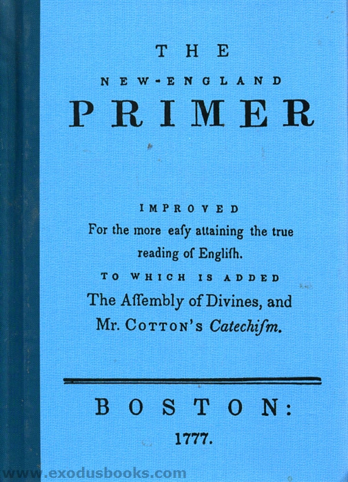 An early American textbook for beginning readers, that includes a rhyming alphabet, Bible questions, and Shorter Catechism, with original woodcut illustrations.