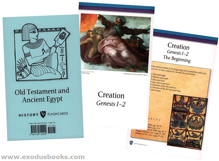 Part of what makes the Veritas History and Bible curricula unique is their series of cards created for use with each teacher manual/worksheet book, the audio CD, and other reference materials. On the first side of the card you will find a lovely art print depicting a biblical or historical event. The second side includes a summary of the event and a list of resources from which the teacher and student can learn more.