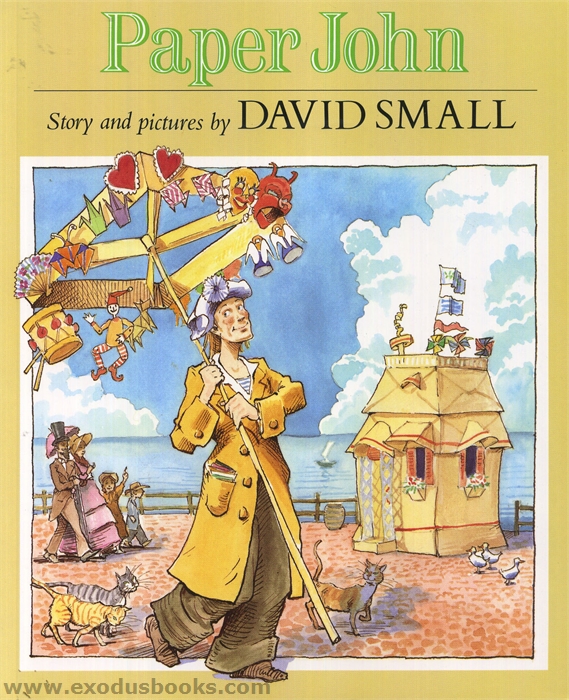 One day a gentle stranger named John comes to the village by the sea. He makes his living folding paper into birds and masks and bouquets of flowers, which he sells in the marketplace. He folds paper boats for the village children and he even builds himself a house made of paper. The townsfolk call him Paper John, and say he's so good-natured a fellow he could get along with the devil himself.