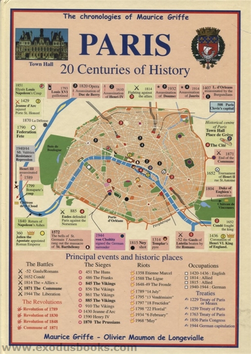 It is very difficult to talk of the history of Paris without bringing in the history of France, because they are linked. Even in selecting events specific to the capital, one is soon side-tracked. As for the subjects, they are so many and varied that it is not easy to classify them. A time scale being uniform, it was necessary for the periods when many things happened (from the Revolution of 1789 onwards), to enlarge the scale. This zoom from 1786 to 2002 follows (see composition of the document). This chronology has no other aim than to follow the evolution of Lutetia to become the Paris of 2000, and its historic sequence. Let's dream about this prestigious past, a world heirloom. The many and magnificent books about Paris are indispensable.