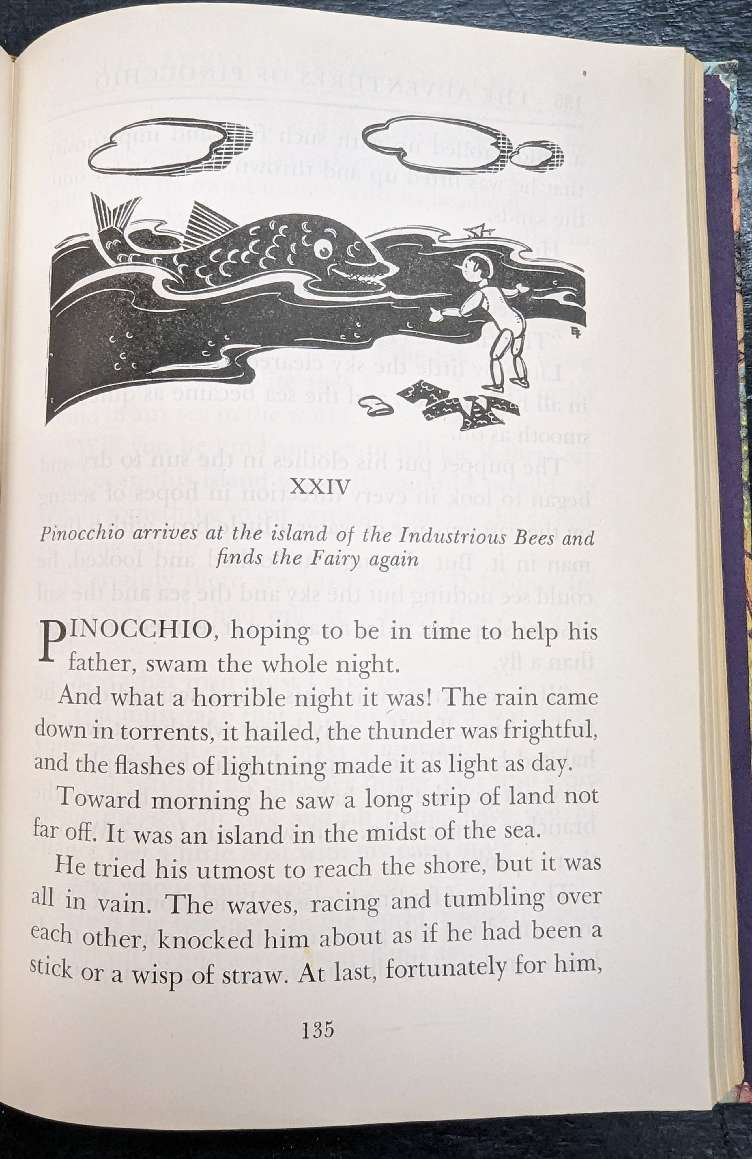 - Edition 4: Likely, this is the first edition that included Pinocchio. In the 1939 Rand McNally catalog the book is labeled "A new Windermere". Copyright 1939, edition of 1940, code B. 5 illustrations in color, other b & w drawings. My dj is red with an image on the spine.