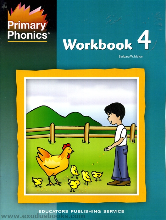Workbook 4 follows the same format as the preceding workbooks. It introduces consonant digraphs and words with a vowel followed by the letter r. Once students have completed Workbook 4, they should be able to read, write, and spell simple words.