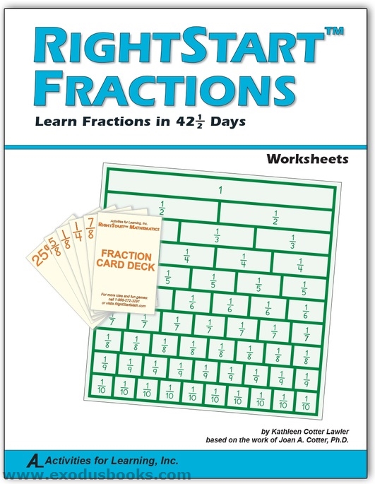 Worksheet manual, containing 17 worksheets, are used with the RightStart Fraction Lesson manual which teaches fractions in 42½ days!