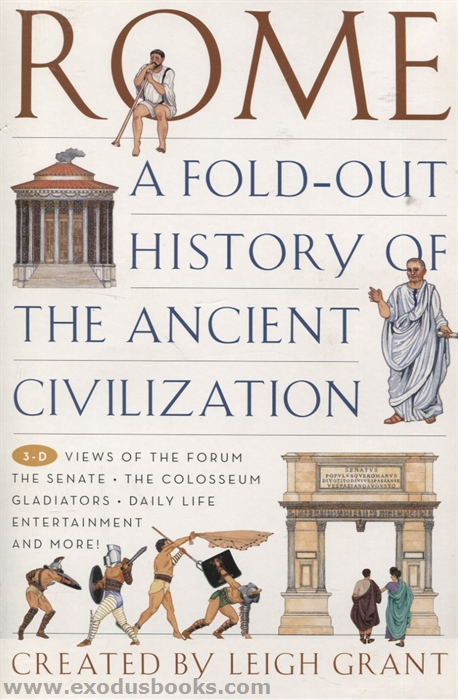The book is laid out accordion-style, with six panels on the front folding out into full-color scenes. On the back of each panel, lively, informative text describes the functions of the buildings, the rules of the colosseum, the life of a gladiator, the class structure of Roman society, and much more. The book also includes a complete time line of the important events in the history of ancient Rome.