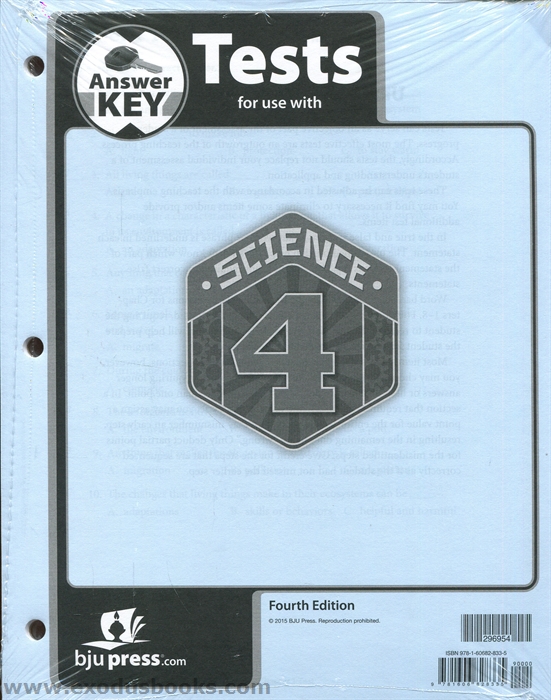 Science 4 Test Answer Key (4th ed.) includes test versions with overprinted answers for convenient grading and evaluation. Corresponds with Science 4 Testpack (4th ed.).