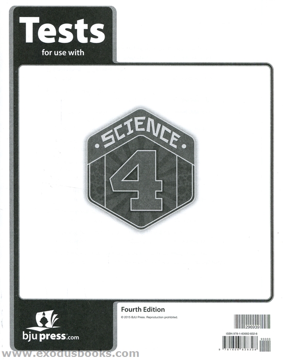 Science 4 Tests (4th ed.) contains twelve chapter tests for evaluating student progress. Corresponds with the Science 4 text. An answer key is available separately.