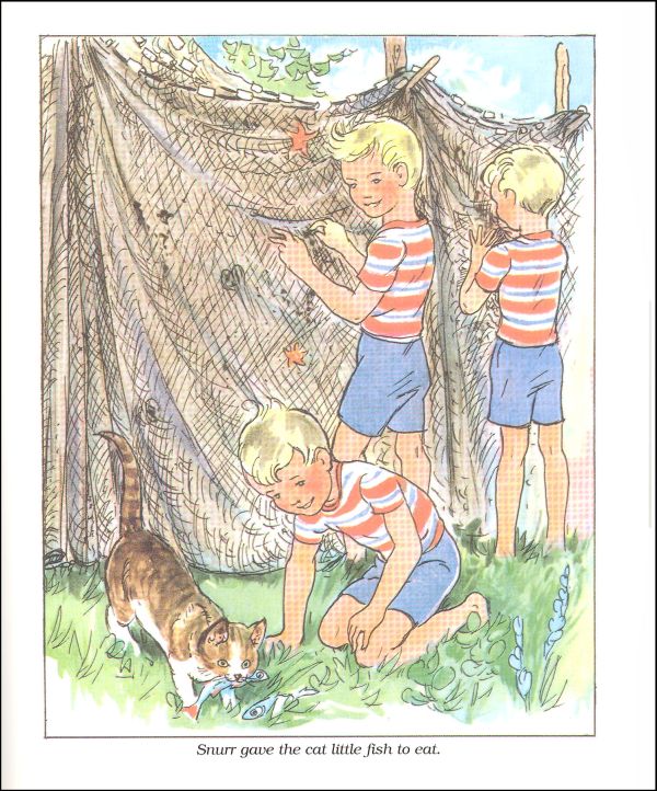 One summer, the boys went to the seashore with their nanny. Although they didn't know how to swim, Snipp and Snapp decided to go "sailing" in Nanny's washtub. Luckily, Snurr ran and got help from their friend Nick. One thing was certain after that—it was time for the boys to learn to swim!