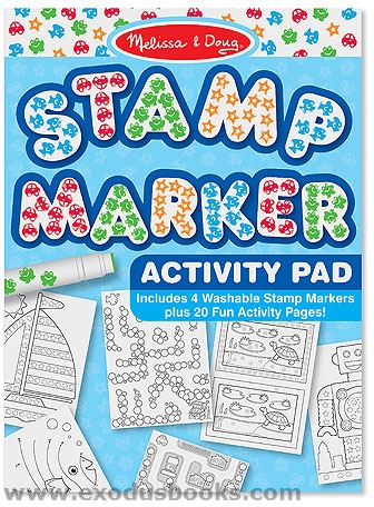 Use colorful stamp markers to complete 20 activities and games! Each activity pad includes mazes, connect-the-dots pictures, matching games, patterns to follow and counting challenges. The stamp markers come in four colorful shapes - orange star, green frog, red car and blue fish - and work on regular paper, too!