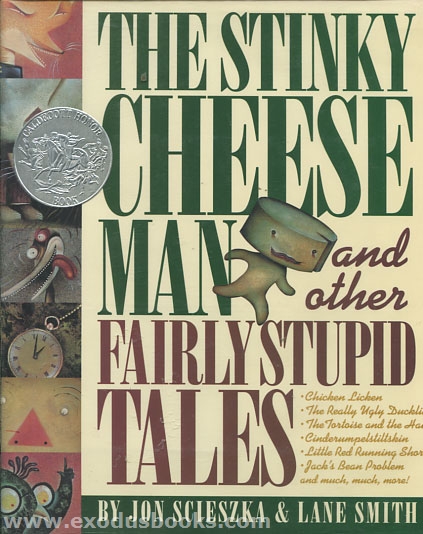 The entire book, with its unconventional page arrangement and eclectic, frenetic mix of text and pictures, is a spoof on the art of book design and the art of the fairy tale. The individual tales, such as he Really Ugly Duckling and Little Red Running Shorts,can be extracted for telling aloud, with great success. Another masterpiece from the team that created The True Story of the Three Little Pigs!