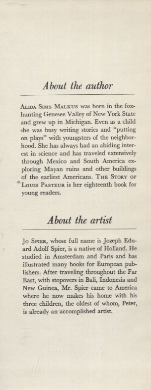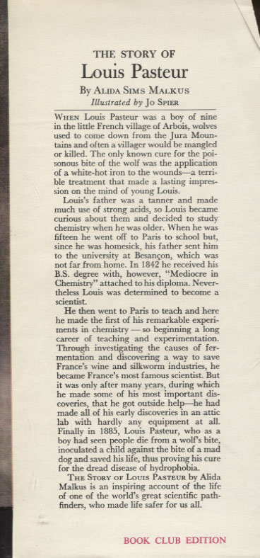 The Story of Louis Pasteur by Alida Malkus is an inspiring account of the life of one of the world’s great scientific pathfinders, who made life safer for us all.