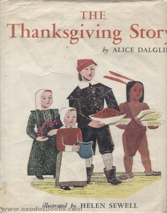 The Thanksgiving Story "is the only really distinguished book we have on that holiday. Miss Dalgliesh has told the Pilgrim story simply from the point of view of the Hopkins family whose little Oceanus was born on the Mayflower; and Miss Sewell has made wonderful full-color pictures. A beautiful book."