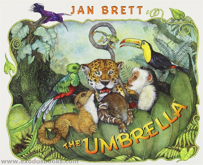 In the spirit of Jan Brett's The Mitten and The Hat, this cheerful tale of escalation will have readers poring over every illustration for the world of details Jan packs in. With its classic story, exotic jungle setting, and brilliantly colorful menagerie, The Umbrella is sure to take its place among Jan's many family favorites.