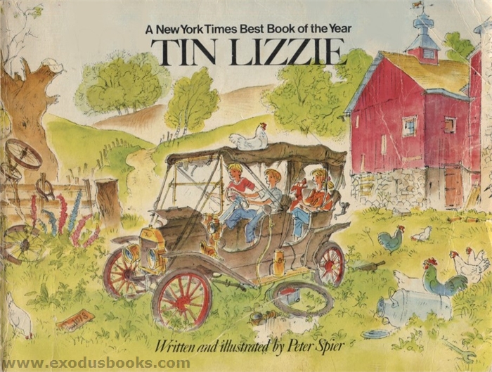 "The hero of this small saga is a Model T touring car-known as Tin Lizzie—first purchased by George Barnhart, feed-store owner. Sold and resold, witness to funerals, weddings, and the Great Depression, Tin Lizzie was finally retired behind a barn. But eventually the historic relic, half a century old, was restored to its former magnificence by an amateur mechanic. The artist's sensitivity to American scenery has always been present in his work; the book, executed in his characteristic, delicate watercolors, depicts fifty years of American history-as seen and lived by ordinary citizens. The result is page after page of fascinating detailed scenes. And the final endpapers, showing all the car's parts, give added evidence that Peter Spier never forgets his audience." —The Horn Book