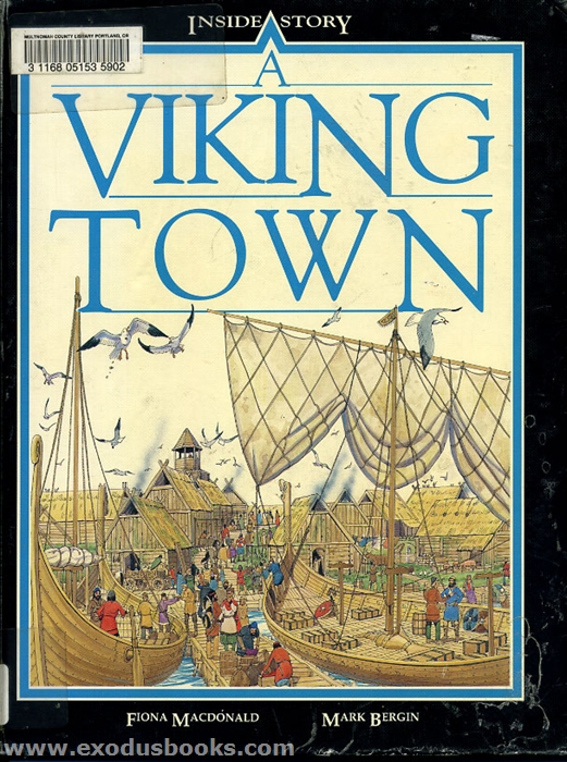 Text and illustrations depict a medieval Viking town and explain how people lived and worked in that time.