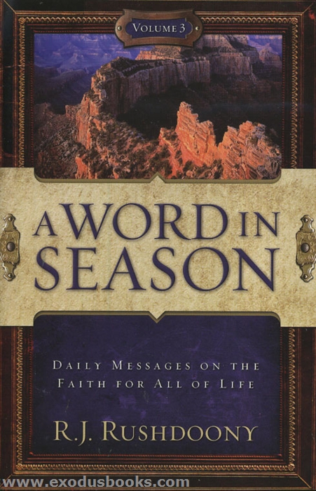 Although Dr. R. J. Rushdoony is most known for his scholarly works on theology, history, philosophy, economics, education, and statecraft, A Word in Season reveals the intense, but simple, approach to applying one's faith to every area of life and thought. This is all done in a format of bite-sized readings on the uncompromising faith.
